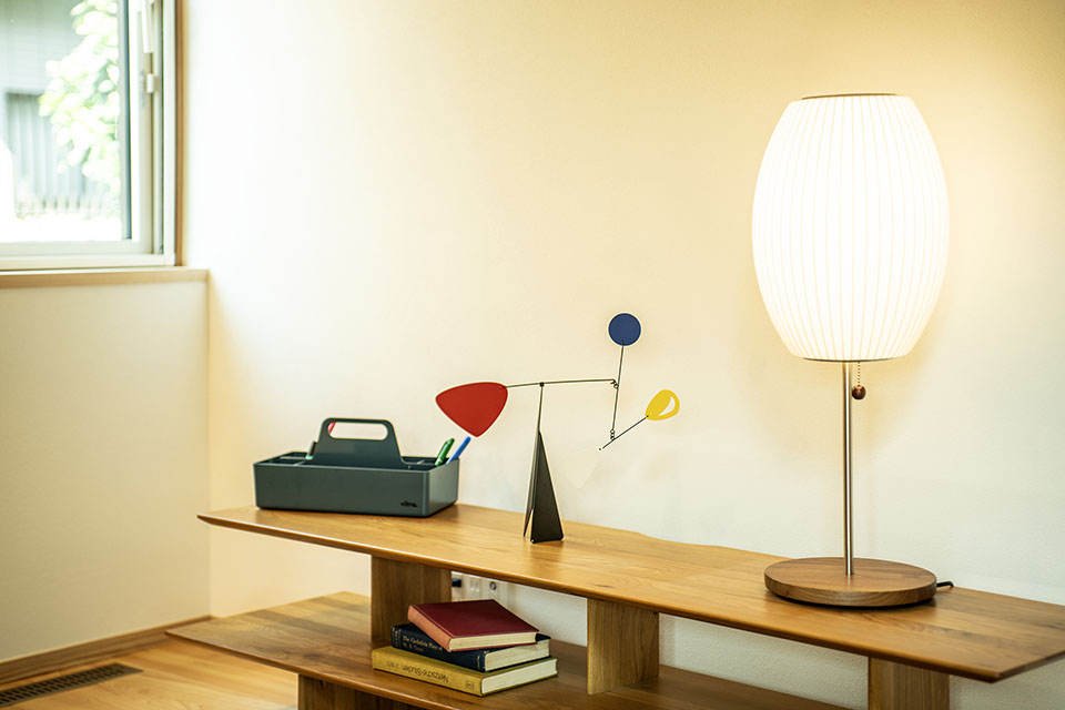名作照明や遊び心のある小物が空間にリズムとアクセントをもたらします。