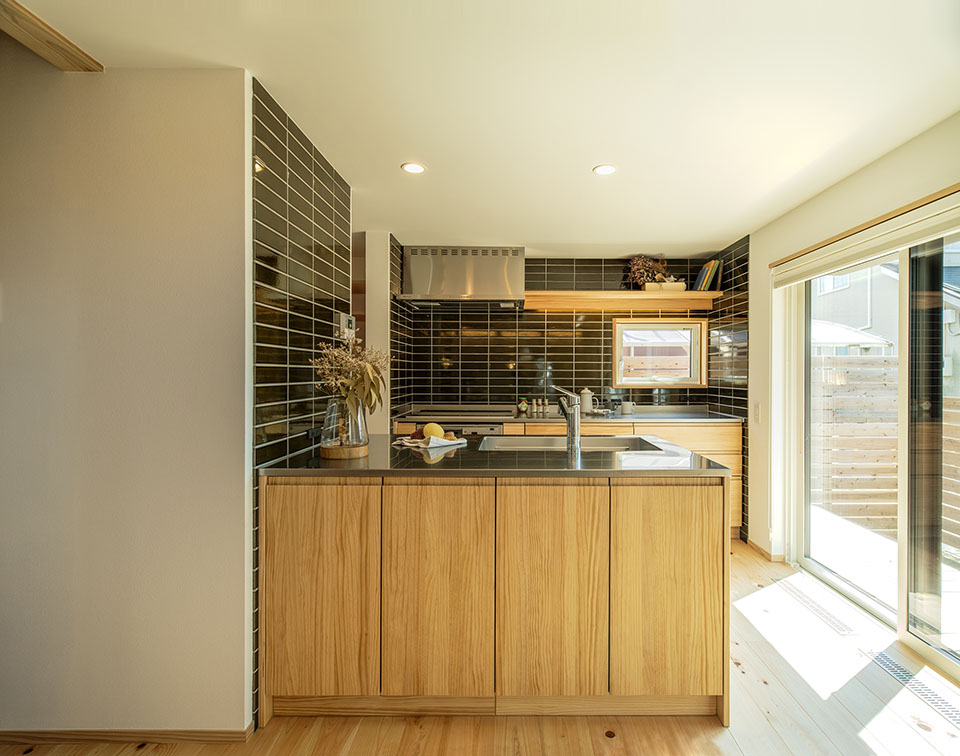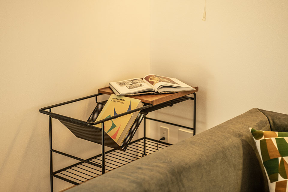 敢えて濃いめのウォールナットの家具を配置し、モダンでエッジの効いた雰囲気を演出しました。