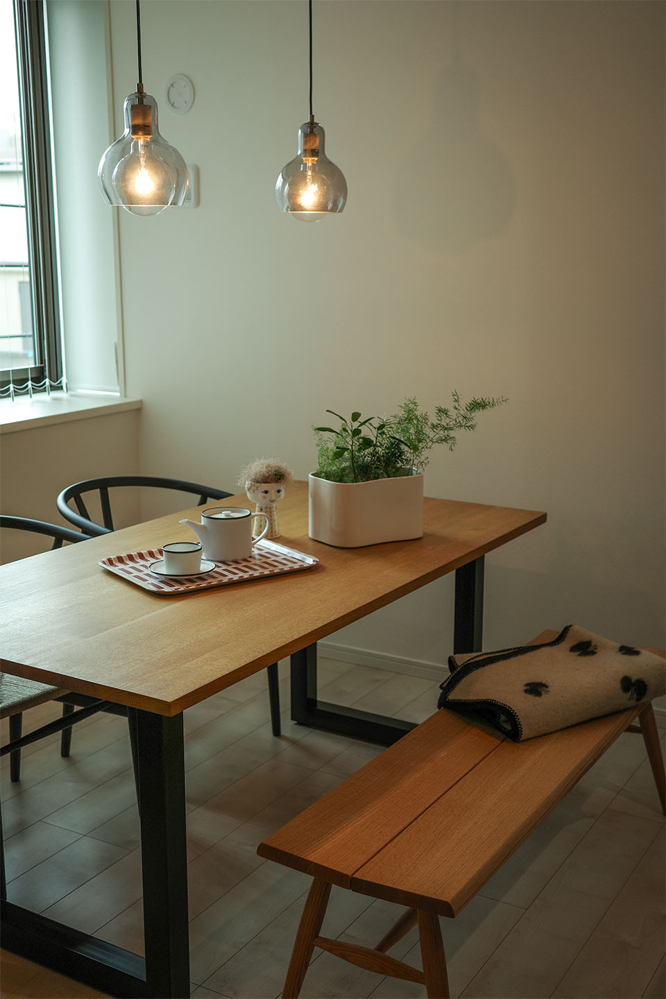 ダイニング上は空間のアクセントとなるような、ペンダントライトを2灯設置しました。
