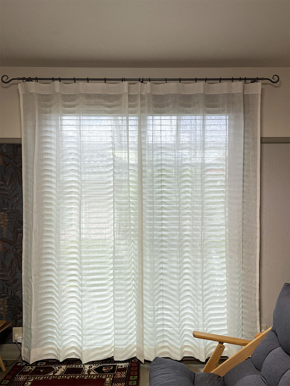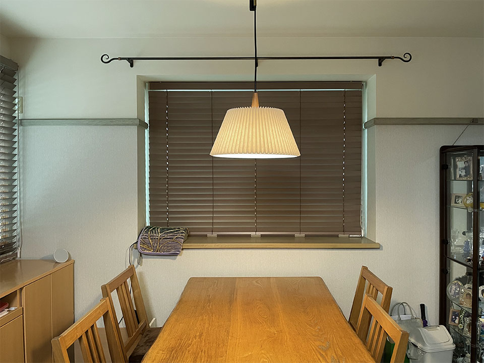 カーテンとウッドブラインド、サイドボードをお選びいただいたお客様の納品事例をご紹介します。