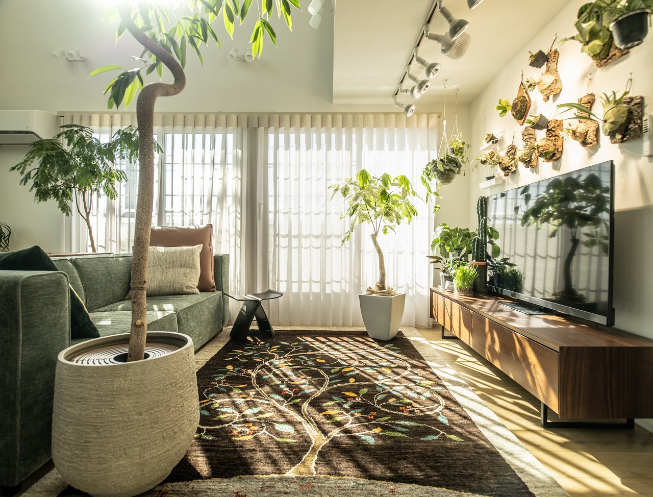 良い意味で、お家に引きこもるようになりました(笑)。 ラグの紋様で植物を楽しんでいましたが、やはり本物も置きたくなり、猫がいても大丈夫な植物を調べて育てるようになったんです。今では、リビングに本物のシンボルツリーがもう一つ増えました。