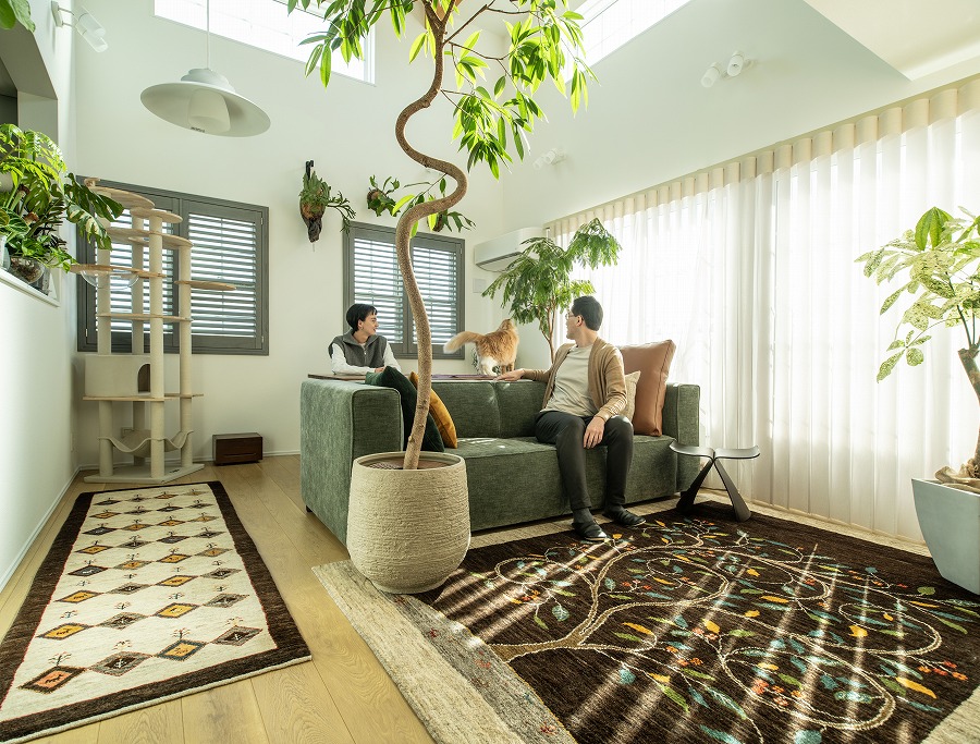 3匹の愛猫を中心に据えた“猫ファースト”な家づくりの中で、なぜギャッベを選び、暮らしがどう変化したのか。そのストーリーを伺いました。