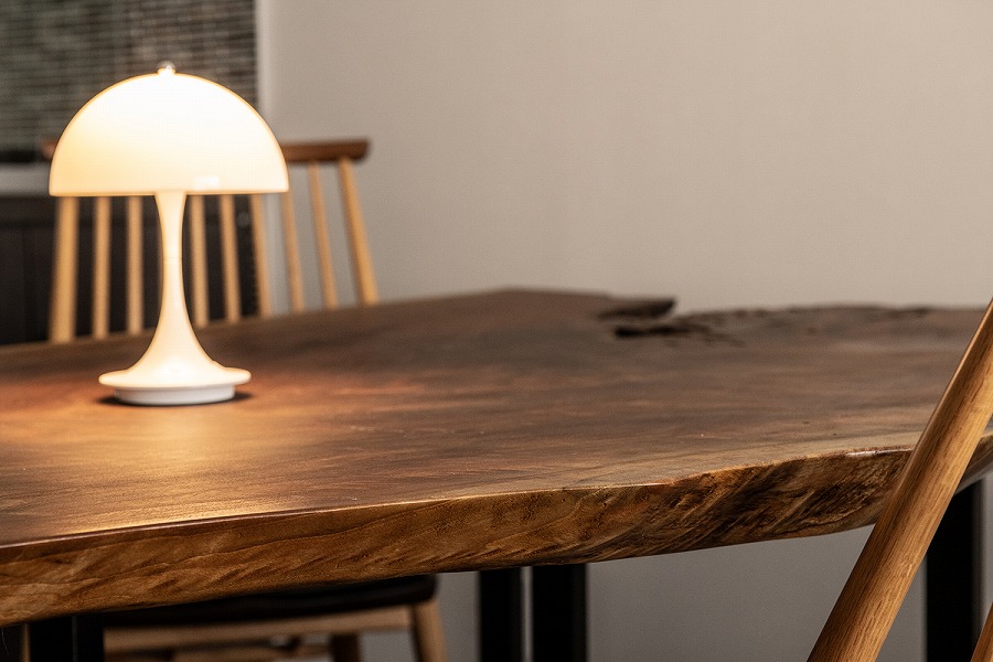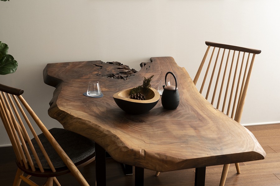 それまでは比較的手頃なテーブルを使われていましたが、使っているうちに安定感がなくなり、買い替えが必要になることもあったそうです。「一枚板は買い替えるものではなく、一緒に歩んでいくもの」長く使い続けられる家具として、一枚板を選ばれました。