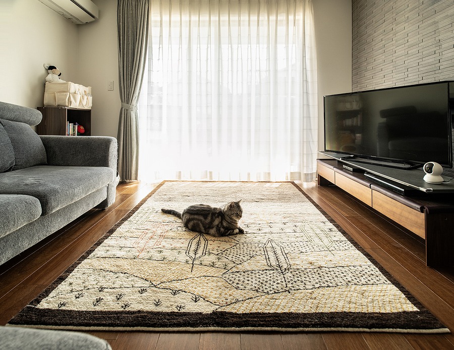 5年使う中でテーブルはすっかりご自宅に馴染み、「うちのものになってきている」と感じられているとのこと。ご自宅にはCLASSICAでお求めいただいたアートギャッベもあり、家具や敷物とともに時間を重ねていく素敵な暮らしが広がっています。