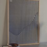 アルヴァ・アアルトがデザインした「スクリーン 100」から着想を得たこのアニバーサリーポスターは、青と黒のインクを層状に重ね、さらにさまざまな角度からレーザーカッターで彫刻のように彫っていく、シルクスクリーン印刷の実験的な手法を用いて、「スクリーン 100」の輪郭を再解釈しました。