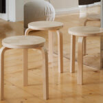 スツール60の3本の脚と1つの座面という最小限の部品は、経済的かつ環境に優しいフラットパックで個装、出荷され、それぞれの持ち主が自ら組み立てるよう、製品そのものだけでなく物流までを含めてデザインされています。それぞれの個性と魅力を持ち合わせた木材の不均一さも自然素材ならではの美しさであり、年月を重ねることで豊かな味わいを増していきます。